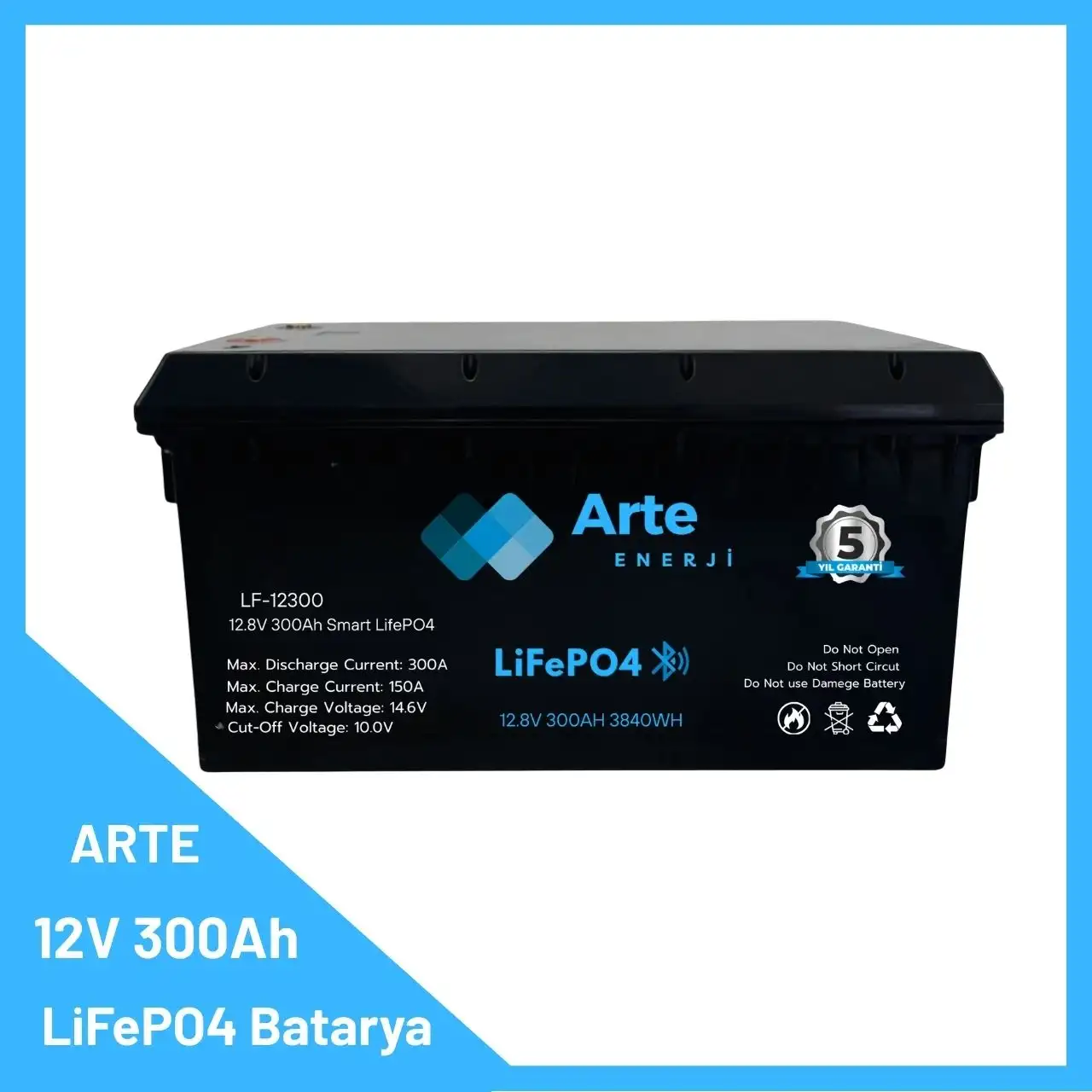 Ürün Açıklaması: Arte 12.8V 300Ah LiFePO4 Batarya – Akıllı BMS | Ev, Marin ve Karavan Uyumlu