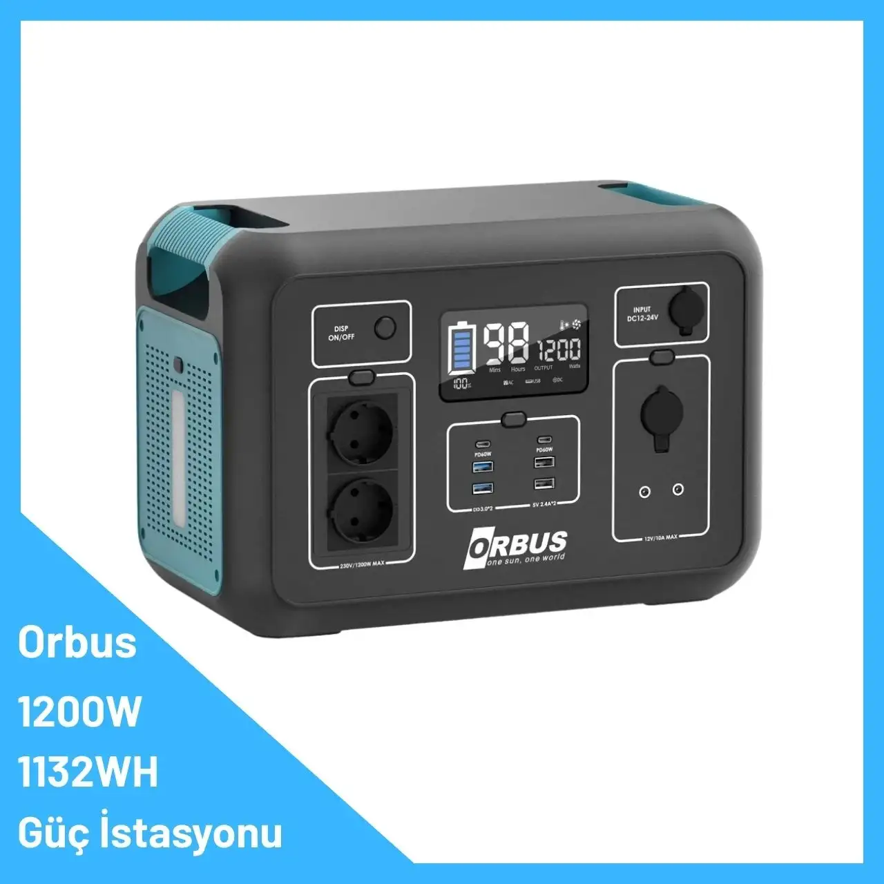 ORBUS 1200W 1132Wh Taşınabilir Güç İstasyonu, yüksek kapasitesi, güvenli yapısı ve çok yönlü kullanım imkânı ile hem bireysel hem de profesyonel enerji ihtiyaçları için ideal bir çözümdür.